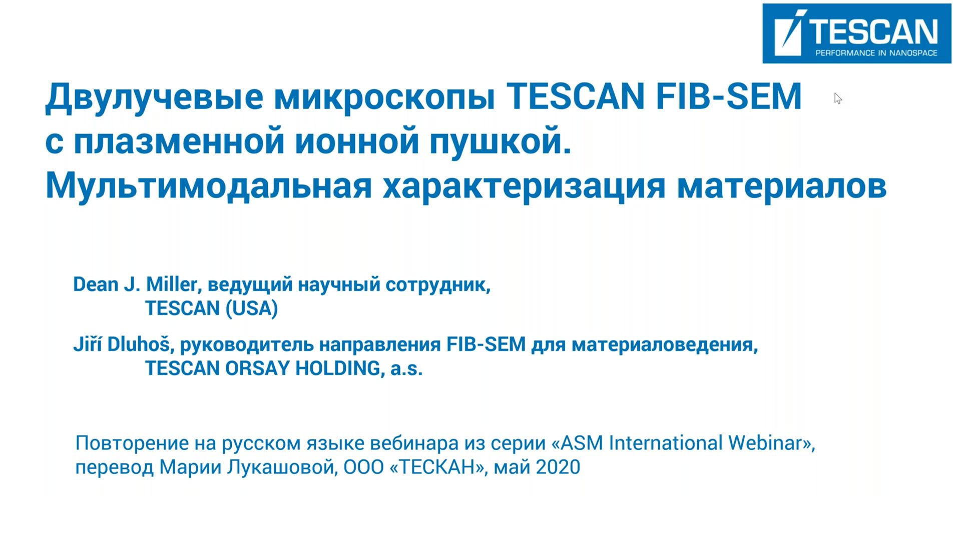 Это выступление является переводом на русский язык англоязычного вебинара за авторством Dean J. Miller, principal scientist, TESCAN USA.