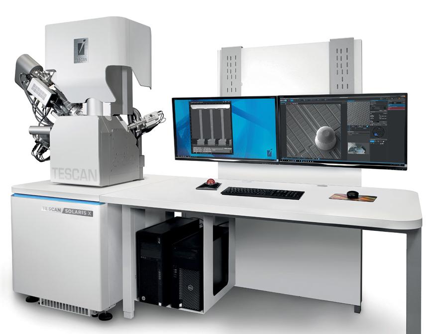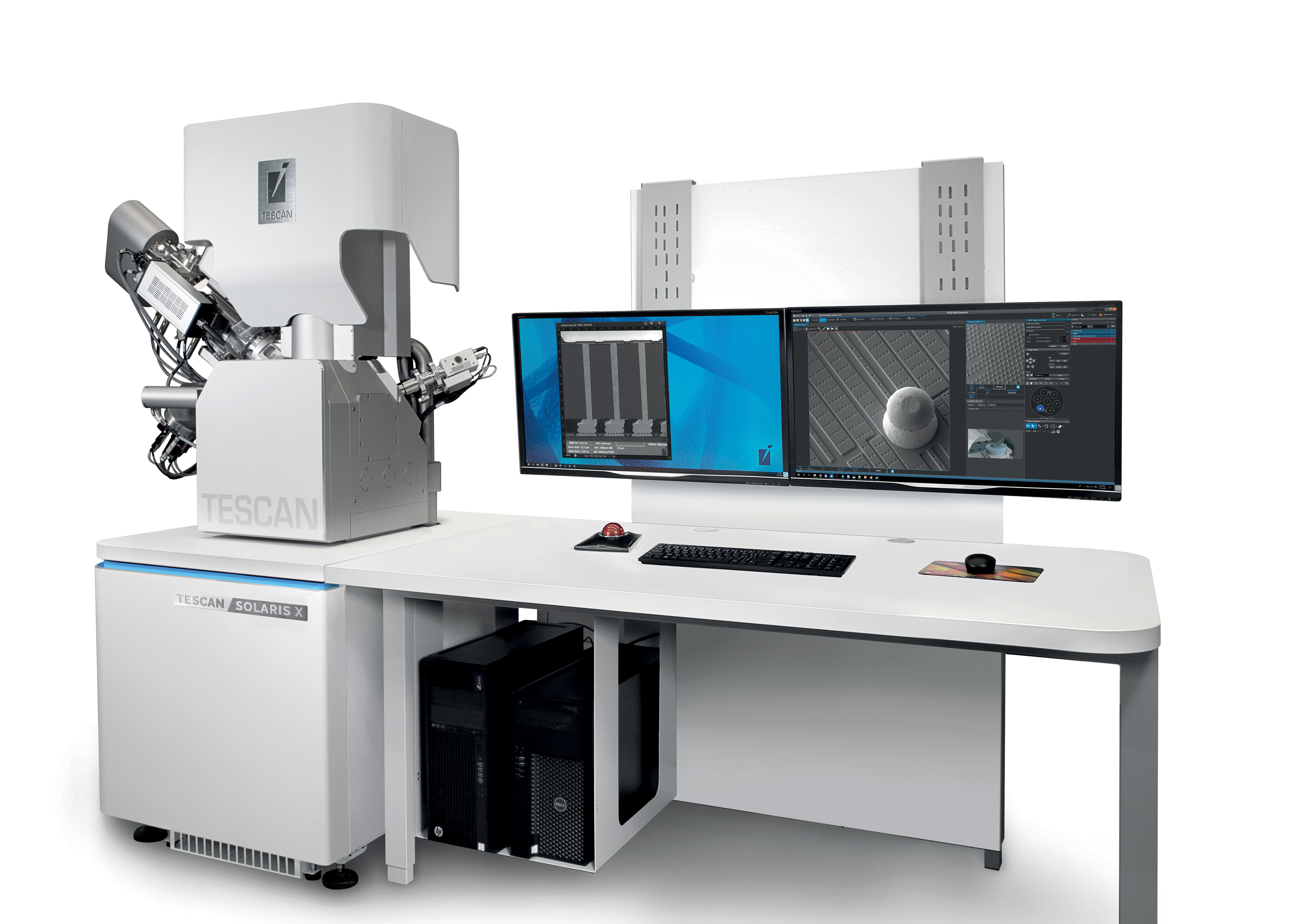 Микроскоп TESCAN SOLARIS X оснащен электронной колонной Triglav™, в которой используется запатентованный объектив TriLens™, состоящий из трех линз. Этот иммерсионный объектив ультравысокого разрешения идеально подходит для получения СЭМ-изображений немагнитных образцов и чувствительных к электронному пучку образцов при низких энергиях электронного пучка. Неиммерсионный аналитический режим работы микроскопа позволяет получать СЭМ-изображения с высоким разрешением, проводить мониторинг FIB-операций в реальном времени и иметь широкое поле обзора для бесшовной, быстрой и простой навигации по образцу. Третья объективная линза формирует различные режимы получения изображений (например, режим с расширенной глубиной резкости) и оптимизирует форму электронного пятна при больших токах электронного пучка. Система детекторов, встроенных внутрь колонны, включает в себя три SE-детектора TriSE™ и три BSE-детектора TriBE™, что позволяет оптимизировать методы контрастирования благодаря селекции вторичных и обратно отражённых электронов по углам рассеяния и таким образом получать больше информации об исследуемом образце. Кроме того, чувствительность сигнала обратно отражённых электронов к самым тонким приповерхностным структурам образца может быть повышена за счет фильтрации отражённых электронов по энергиям.