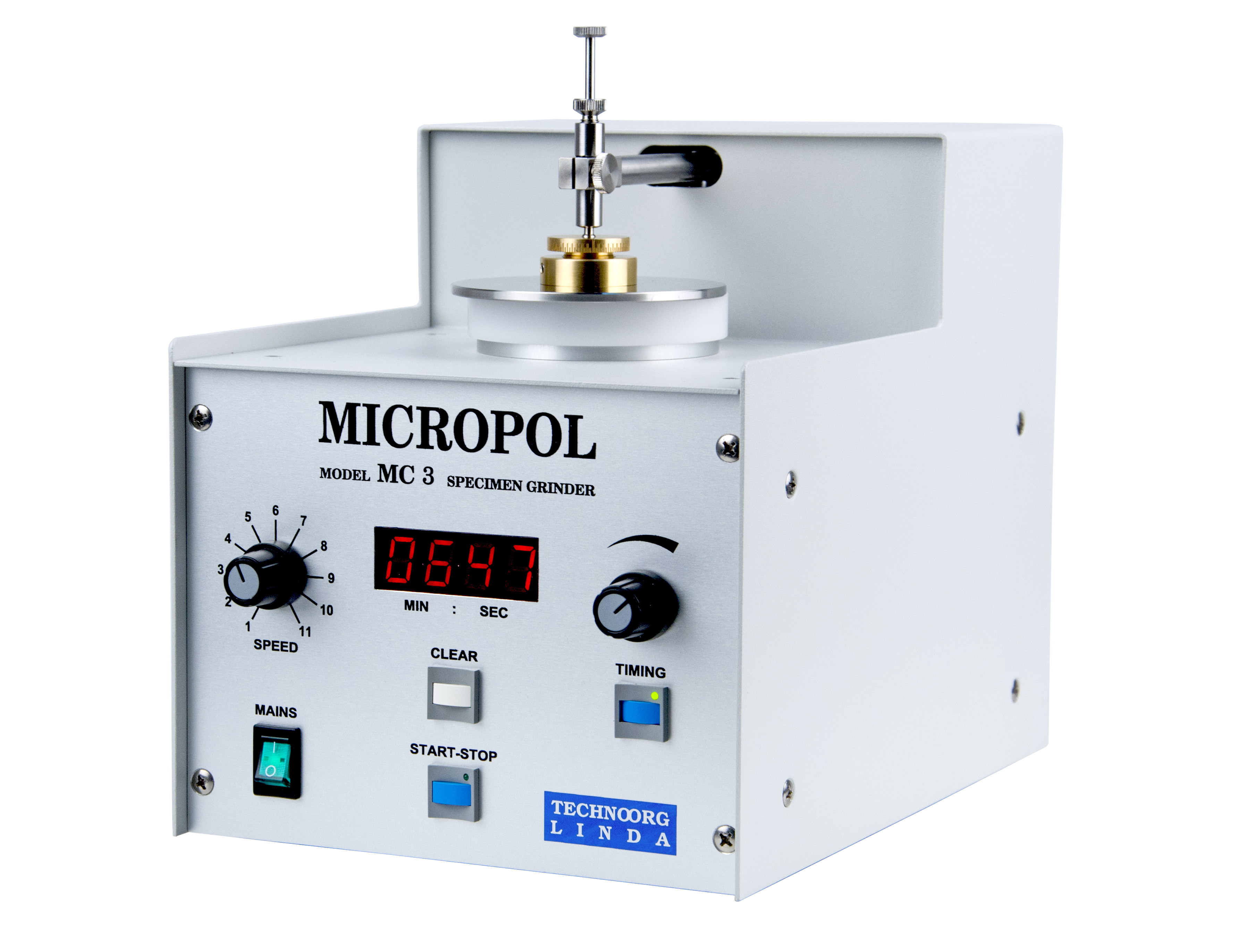 Штанга MICROPOL MC3 стохастически перемещает держатель с образцом аккуратно придавливая его к поверхности шлифовального диска с нанесенным абразивным материалом. В качестве абразива может служить, как различная бумага для шлифовки, так и раствор-суспензия, нанесенная на полировочную ткань.