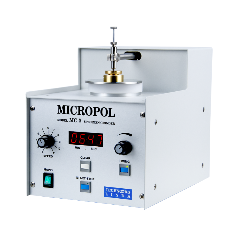 Прибор MICROPOL MC3, будучи удобным для металлографической полировки, специально разрабатывался для деликатной пробоподготовки в применении к СЭМ и TEM. Два вида держателей образцов включены в стандартный комплект прибора и позволяют легко обрабатывать образцы, как в плоскости, так и с центральным углублением (dimpling) для утонения изучаемого материала.