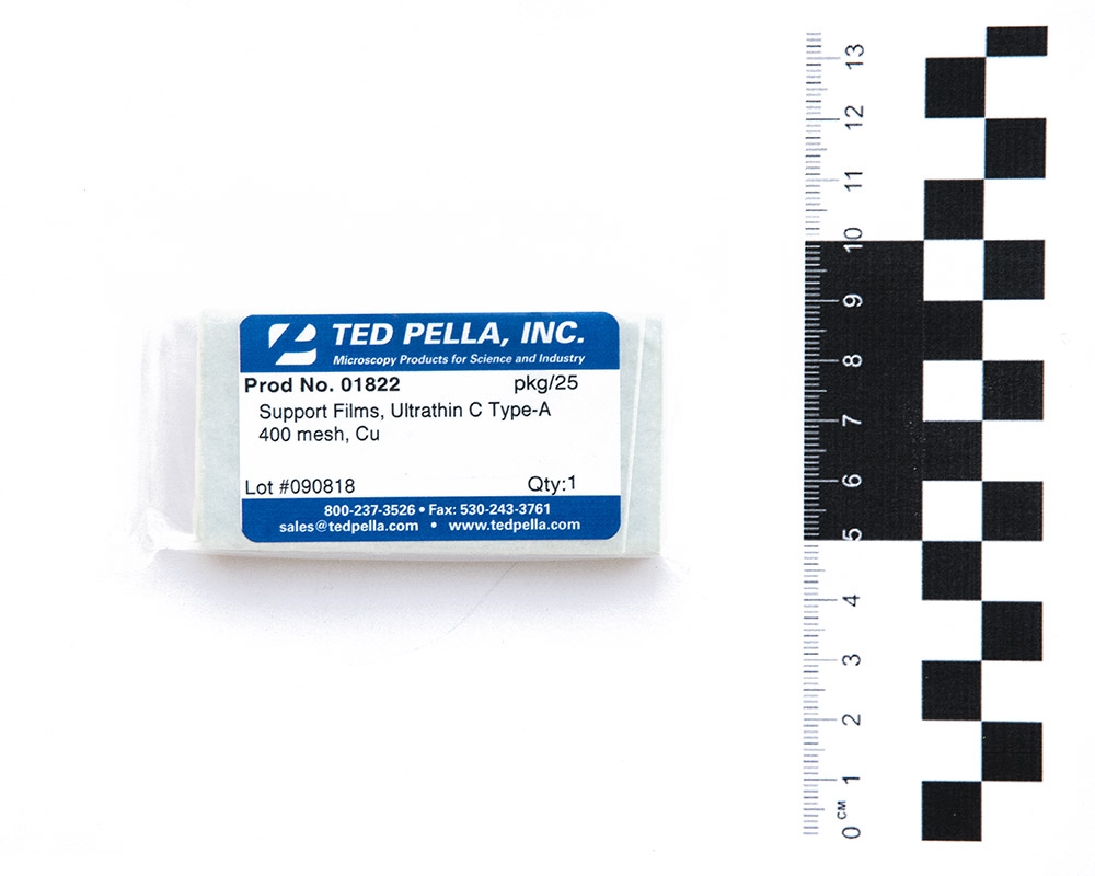 Медные сеточки для просвечивающего электронного микроскопа с ультратонкой углеродной поддерживающей плёнкой 3 нм и с удаляемой формваровой плёнкой с противоположный стороны сеточки, 400 mesh, 25 шт./уп.