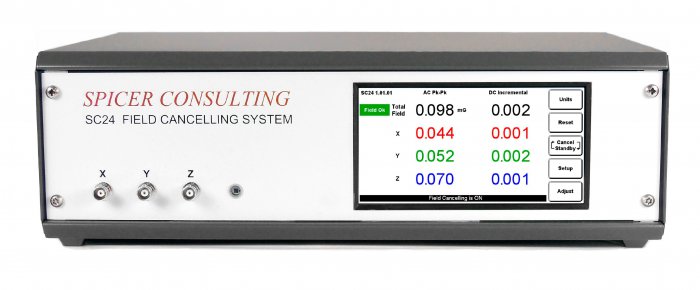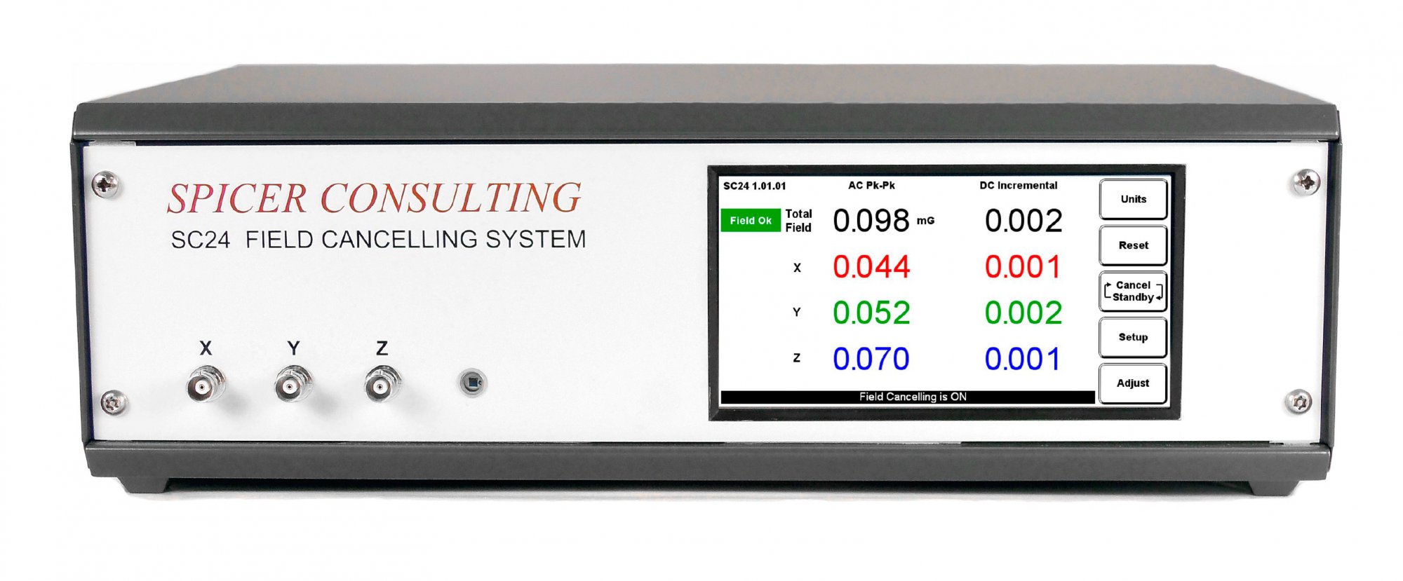 Система SC24 служит для подавления внешних электромагнитных полей в диапазоне частот от постоянного DC-поля до 5 кГц. Для обеспечения такой ширины диапазона SC24 обладает расширенной полосой пропускания благодаря кабелям с малой индуктивностью, размещаемым либо на металлической рамке вокруг электронной колонны СЭМ или ПЭМ, либо в варианте «комнатной» установки с размещением контуров кабелей на стенах помещения.