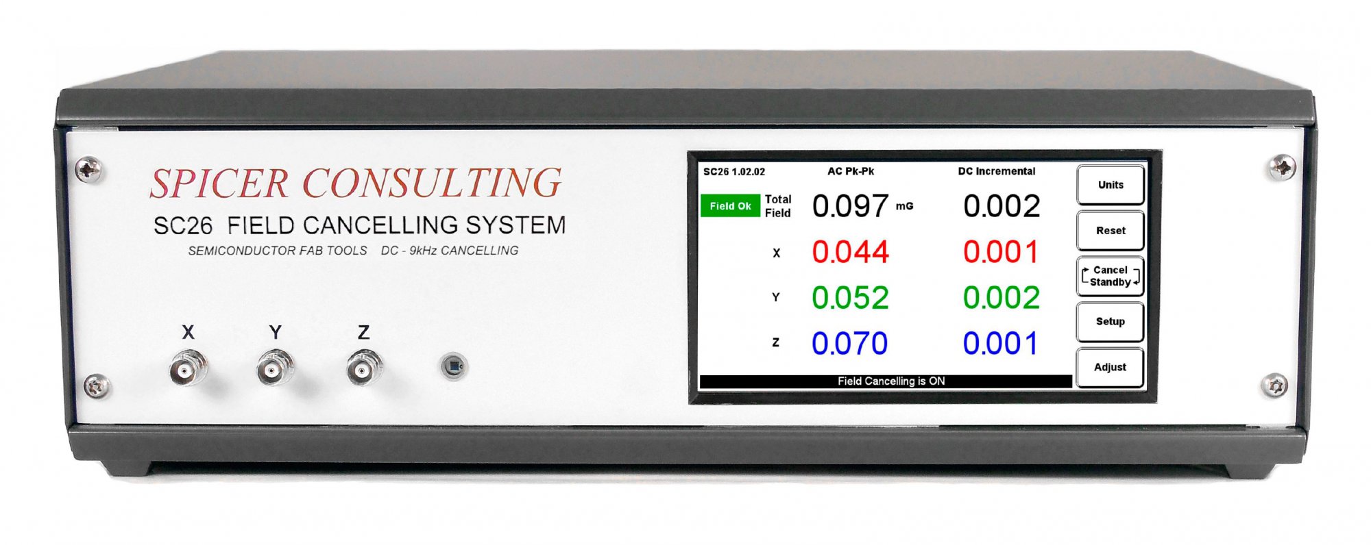 Система SC26 служит для подавления внешних электромагнитных полей в диапазоне частот от постоянного DC-поля до 9 кГц и более. Для обеспечения такой ширины диапазона SC26 обладает расширенной полосой пропускания благодаря кабелям с малой индуктивностью, размещаемым либо непосредственно на раме корпуса прибора с электронно-лучевой системой, либо на металлической рамке вокруг электронных колонн таких устройств как электронно-лучевой литограф или электронный микроскоп.