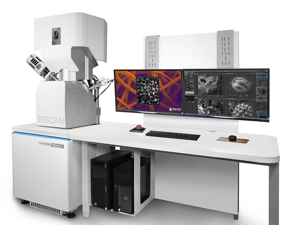 Микроскоп TESCAN MAGNA был разработан целенаправленно для получения СЭМ-изображений с ультравысоким разрешением, реализуемым при низких ускоряющих напряжениях. Зачастую этот микроскоп оснащён также детектором прошедших электронов STEM, который, напротив, применяется с высоким ускоряющим напряжением 30 кВ. Поэтому настоящий микроскоп станет наиболее подходящим выбором для работы с наноматериалами настоящего и будущего, такими как каталитические структуры, нанотрубки, наночастицы и материалы наносборки.